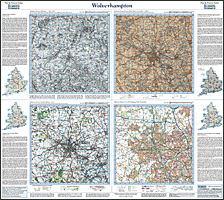 | Easy comparison of past and present. 4 periods, 4 maps, 1 scale.Ordnance survey One-Inch maps from the Old series, New Revised Series and Popular Edition enlarged, re-projected and shown alongside present day 1:50,000 mapping. |